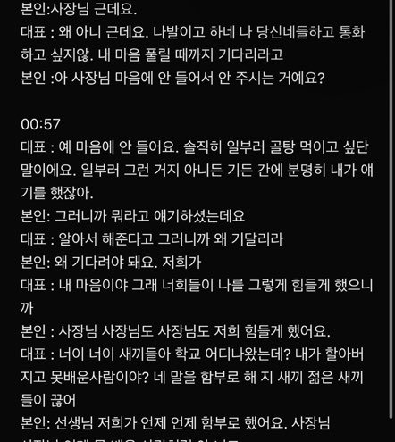 저희는 사장님 마음에 안 든다고 언제까지 고통 받아야 하는 걸까요