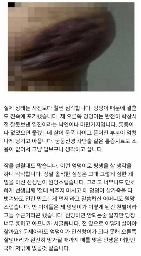 당시 선생님 체벌에 의한 엉덩이괴사 후유증 호소
