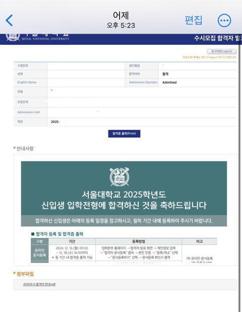 서울대생 됐다..
