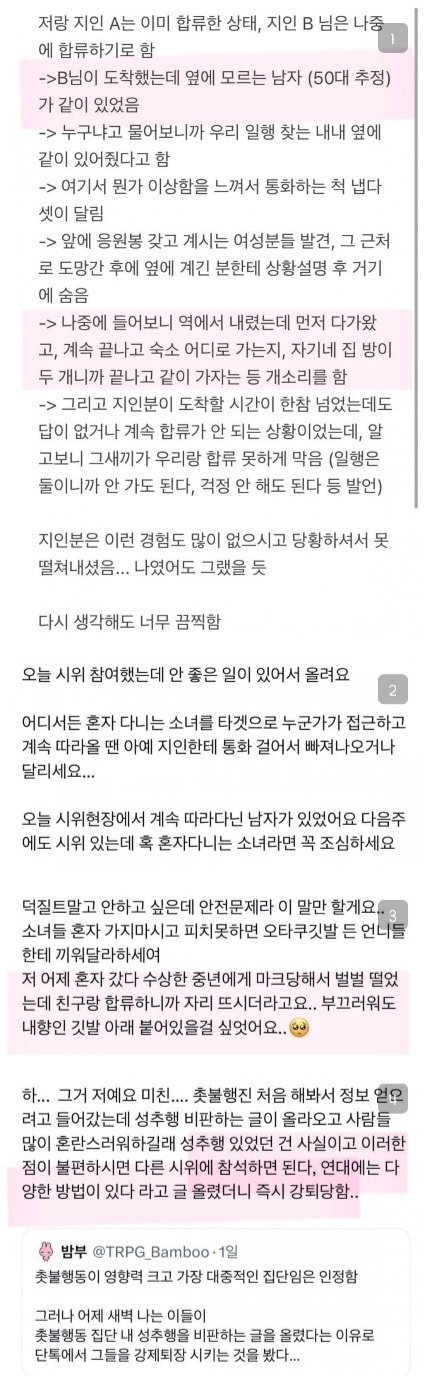 사람많고 추운데 애기를 왜 데리고나가. 그러다 애가 다치거나 아프기라도하면 그것도 남탓하겠지. 남탓이 좌빨종특이니까. 애기들은 데리고나오지마라.