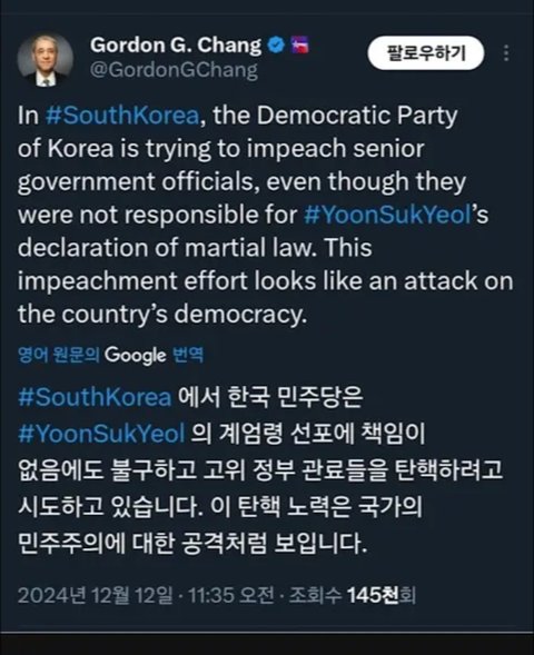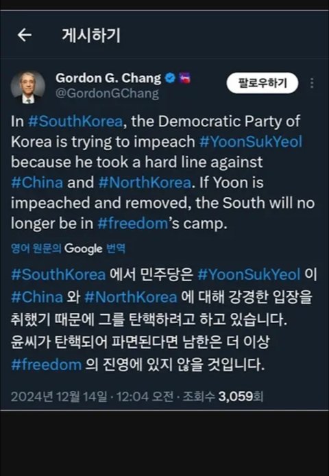 고든 창은 트럼프 대선캠프 아시아 태평양 자문위원임.