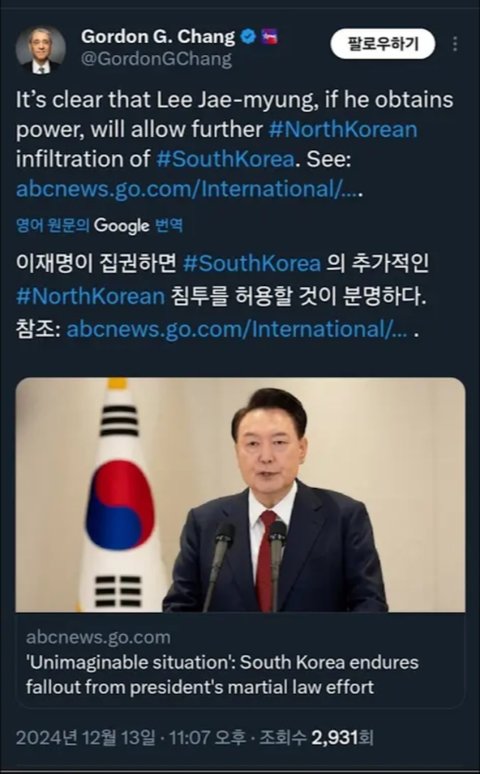 그리고 중국인 및 조선족들아 한국 일에 끼어들지 말아라 ㅡ ㅡ