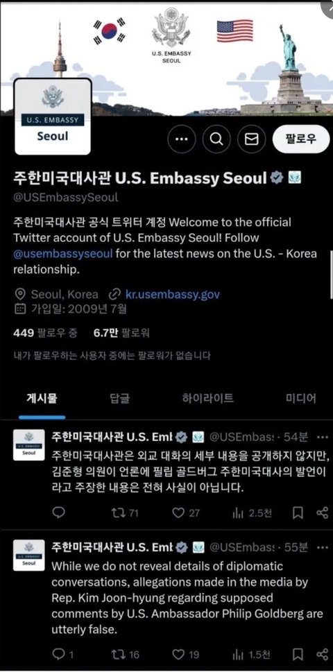 민주당 김준형 의원 발언 관련 미국 공식 입장임.