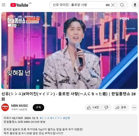 (사진3 설명) 신유(シンユ)X마이진(マイジン) - 홀로된 사랑(一人になった恋)|한일톱텐쇼 28회