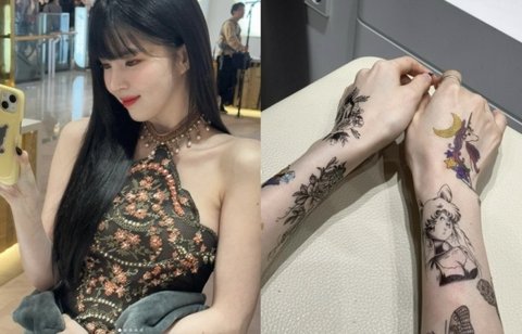 14일 한소희는 자신의 소셜미디어에 별다른 설명 없이 사진 여러 장을 공개했다. 사진 속 한소희는 양팔 가득 다양한 타투 스티커를 붙인 모습으로 눈길을 끌었다. 세일러문, 꽃, 나비, 유니콘 등 다채로운 그림들이 그녀의 뽀얀 팔을 장식하고 있었다.