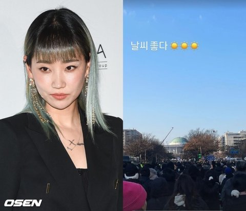 14일 예은은 개인 SNS를 통해 국회 앞 탄핵 촉구 시위에 나선 사진을 올린 뒤 “날씨 좋다”는 글을 게재했다.