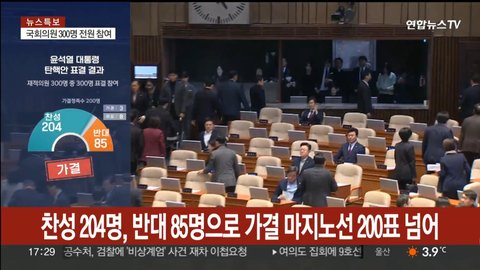 (사진2·3 설명) 2024년12월14일 연합뉴스TV 뉴스특보 화면