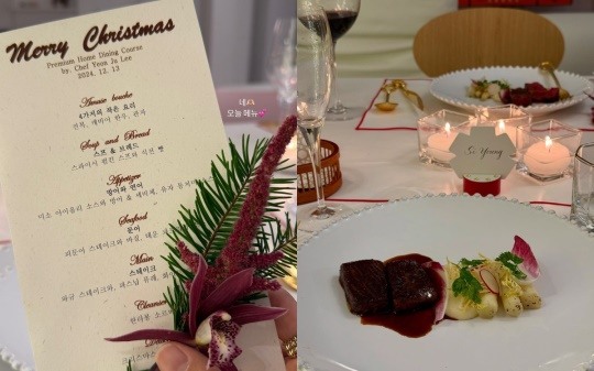 특히 넷플릭스 오리지널 '흑백요리사'에 출연했던 이연주 셰프의 이름이 적힌 메뉴판과 고급스러운 음식들이 시선을 사로잡는다.