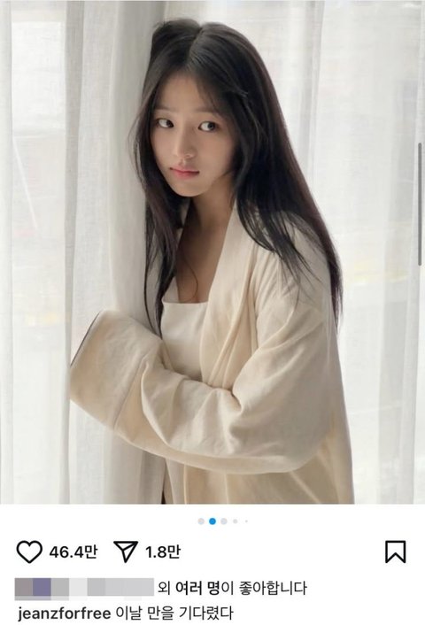 앞서 뉴진스는 지난 14일 공식 계정과는 별도의 새로운 인스타그램 ‘진즈 포 프리’를 열었다. 민희진 전 어도어 대표는 이들의 첫 게시물에 ‘좋아요’를 눌렀다.
