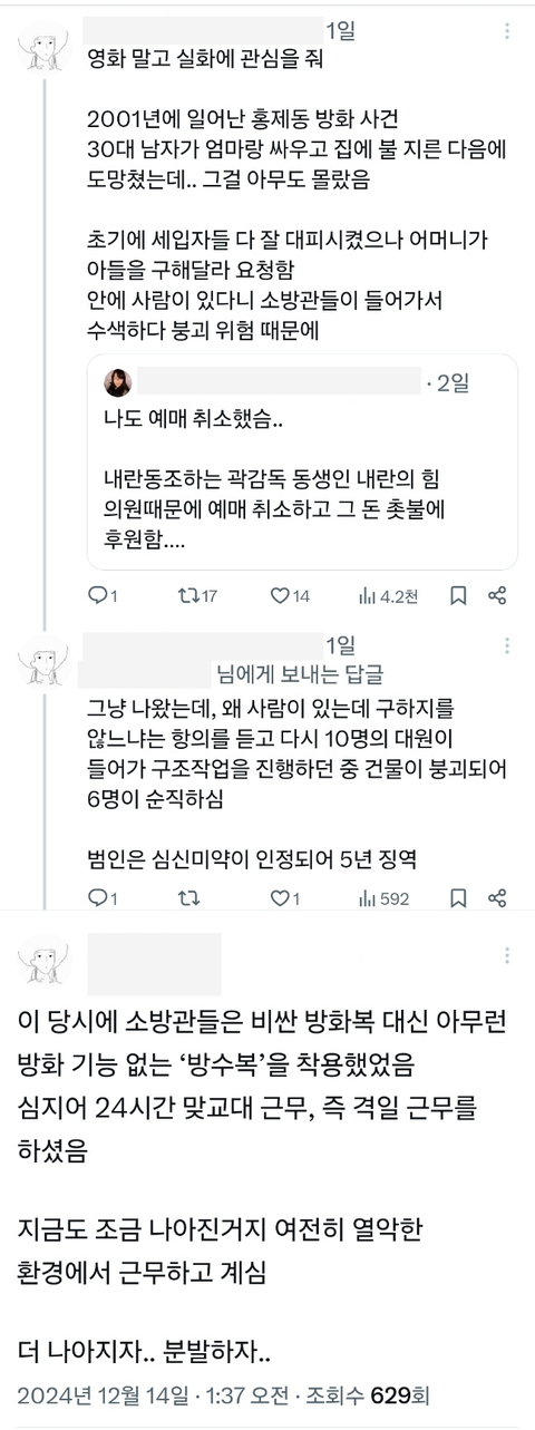 화재 등의 위험 속으로 뛰어들어야 하는 육체적인 위험과 차마 보기 힘든 많은 사건들을 경험해야만 하는 마음의 트라우마 까지ㅠㅠ