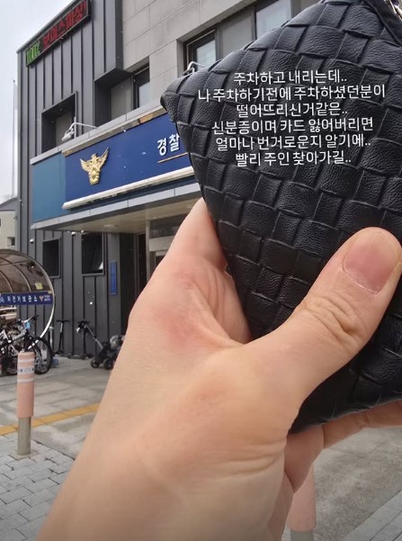 사진 속 정가은은 경찰서 앞에서 주운 지갑을 경찰서에 맡기는 모습.