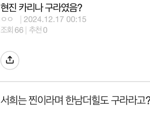 주제파악을 못한다는 욕을 먹고도 아직도 파악이 안되니?앵그리춘선님이 니네서희 사는집은 한남더힐이 아니라 압구정이라고 폭로하고 서희 구라 다 털리고 고소까지 당한걸 봤으면 얌전히 사려야지 서희는 찐이라며 거리면서 어딜 추하게 서희를 언급할려고 굴고있어?주제파악 못한다는 소리를 또 듣고 싶은건가..??ㅎ아니면 서희팬들이아니라 아직도 정신못차리고 서희 언급하는 애들 역바이럴 잘하고 다른 기획사 아이돌을 까고 다닌 하이브퀴짓인가?ㅋㅋ서희한테 변호사비를 다 대준 디스패치가 하이브랑 손잡았다는 얘기 있더만ㅎ