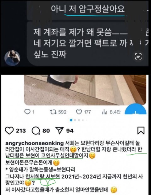 +주제파악 못한다는 욕을 먹어도 서희는 찐이라며 거리면서 추하게 서희 언급하는 팬아 앵그리 춘선님이 니네서희 사는집은 한남더힐이 아니라 압구정이라고 폭로하고 더힐이 코인 서보현이 사는집이라고 폭로했단다