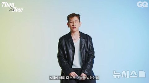 [서울=뉴시스]크러쉬가 유튜브 채널 ‘GQ 코리아’에 출연해 허리디스크 수술 사실을 이야기 하고 있다.(사진= GQ 코리아 제공) 2024.12.16. photo@newsis.com.