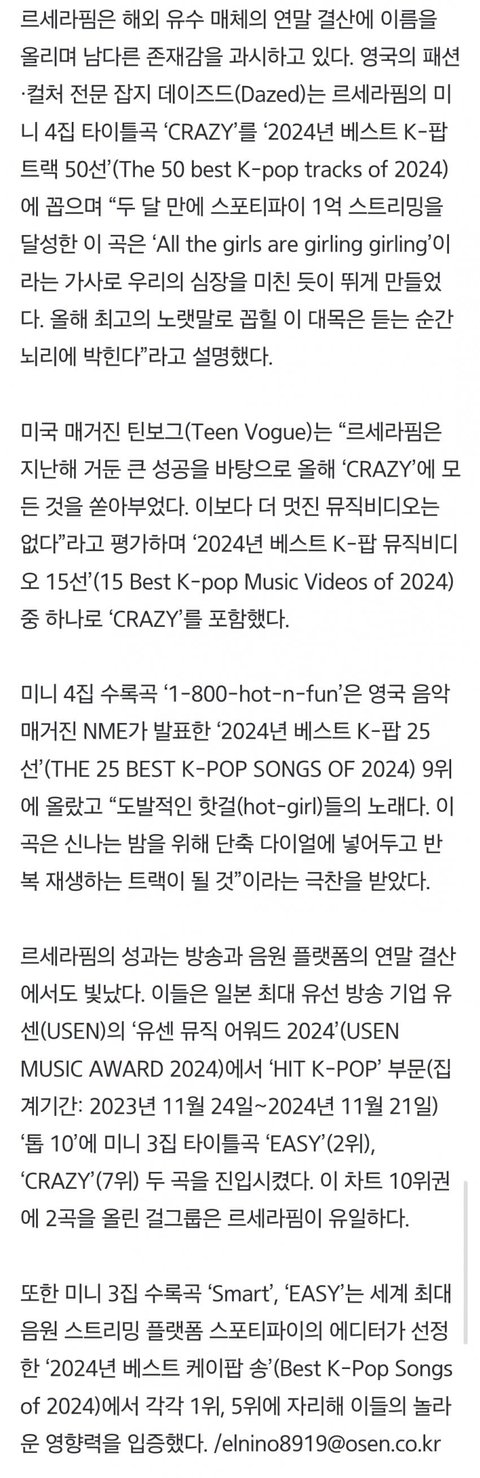 美·英·日 인정 '올해의 베스트 K-팝 등극