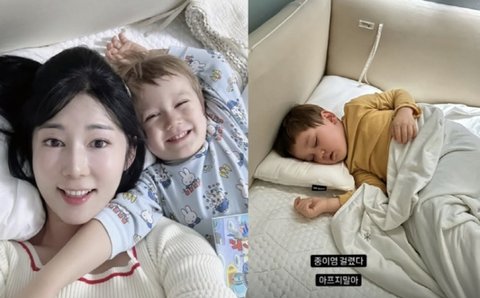 17일 사유리 "중이염 걸렸다. 아프지 말아"라며 앓아누운 젠을 보며 안타까워 했다.