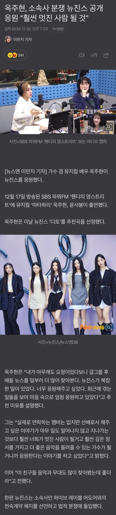 옥주현, 소속사 분쟁 뉴진스 공개 응원 “훨씬 멋진 사람 될 것”