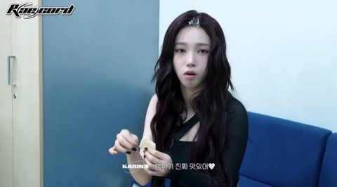 영상 속 카리나는 스태프들과 뻥튀기로 장난을 쳤고 "(뻥튀기) 맛있어서 집에 사서 가면 안 먹는다"는 한 스태프에게 "저한테 주시면 안 돼요? 나 진짜 많이 먹는데 뻥튀기. 뻥튀기 진짜 맛있어. 요즘 내 최애 간식"이라고 말했다.