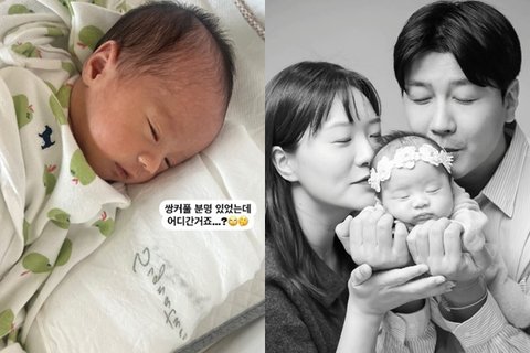 사진 속에는 신생아 시절 둘째 딸 모습이 담겼다. 선명한 쌍꺼풀과 뚜렷한 콧대가 눈에 띈다. 최근 사진에서는 쌍꺼풀이 사라진 듯한 모습이 포착돼 엄마로서 아쉬운 마음이 드는 모양이다.