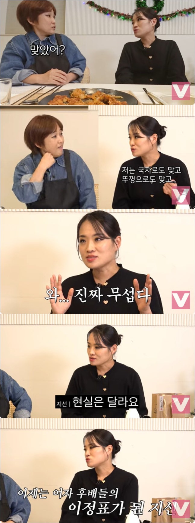 이어 정지선은 사연자에게도 현실적인 조언을 건넸다. 정지선은 "이 친구도 마인드는 정말 좋지만 현실은 다르다. 여자 셰프가 너무 없다 보니까 내가 뭔가 요리를 더 잘한다던가 대회를 나간다거나 석사 박사를 따든가 그들보다는 유식해져야 한다. 왜냐면 체력이 안 된다. 무거운 걸 드는 게 안 된다. 캔 3kg 까지 6개 든 박스를 들어야 하고 그렇기 때문에 그걸 이기려면 머리가 똑똑하고 센스가 있어야 한다"고 강조했다.