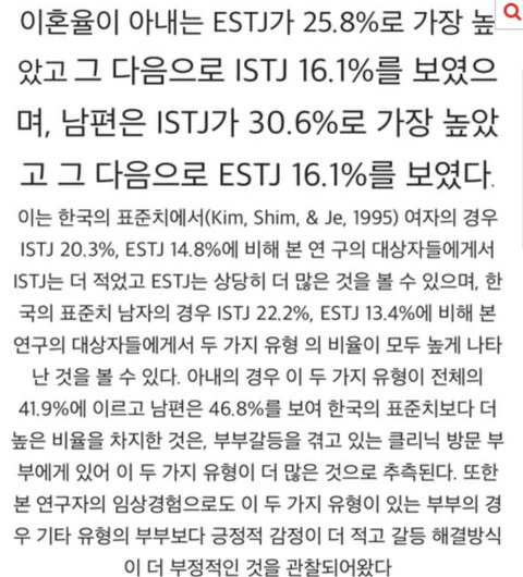 여자는 estj 남자는 istj일수록 이혼당할 확률 높다