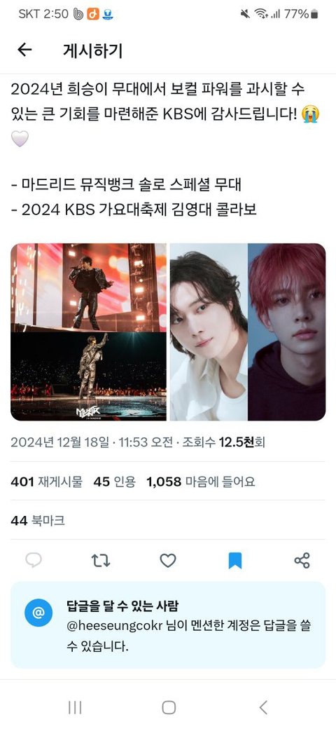 비주얼 조합 짱임 희승이 영대랑 닮아다고 들은적 있어는데 영대랑 한다니 넘 좋다 둘다 잘생기고 다해https://x.com/heeseungcokr/status/1869214445744058578?t=KGmlZwy8_LQxy03ZxfW22Q&s=19