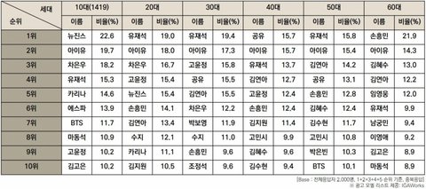 4세대 아이돌중 개인으로는 유일하게 10대 20대에서