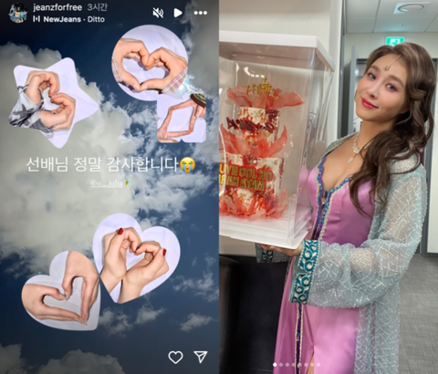 뉴진스는 18일 인스타그램에 “선배님 정말 감사합니다”라는 메시지와 함께 옥주현을 태그하고서 손하트를 보냈다. 옥주현 또한 이를 리그램 한 뒤 “앞으로의 뉴진스 더 기대 돼. 응원해. 사랑을 담아”라고 화답했다.