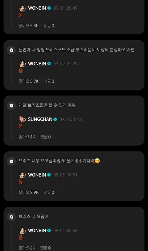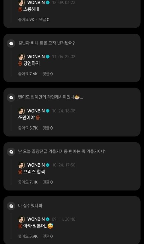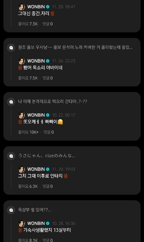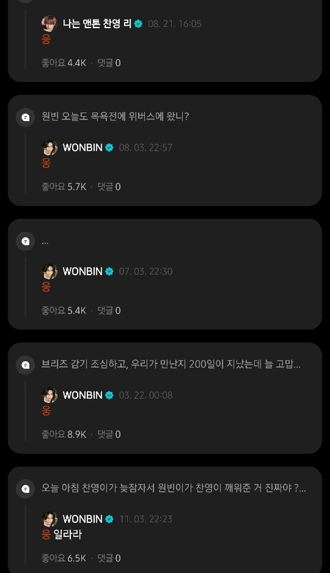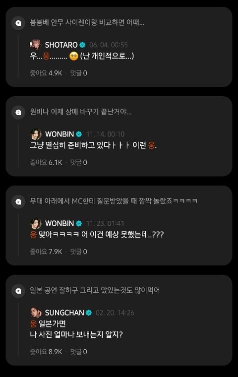 원빈은 말끝에 웅 쓰기보단 그냥 웅 자체를 많이씀