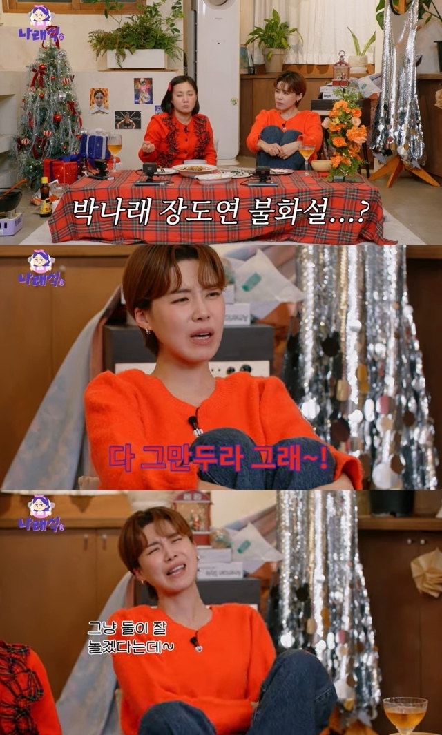 영상 속 박나래는 장도연을 초대해 이야기를 나누던 중 "어느 순간 도연이랑 나랑 '방송용으로만 친한가?' 이런 소리가 있었다"며 불화설을 언급했다.