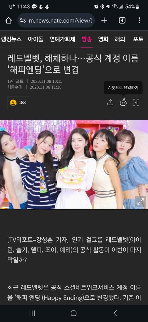 레드벨벳 해체 암시