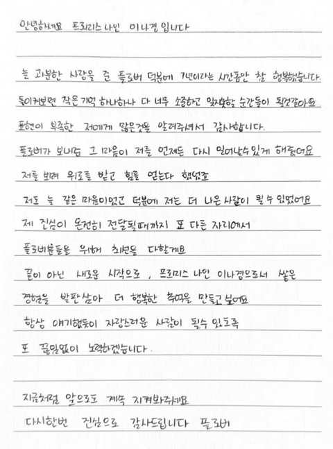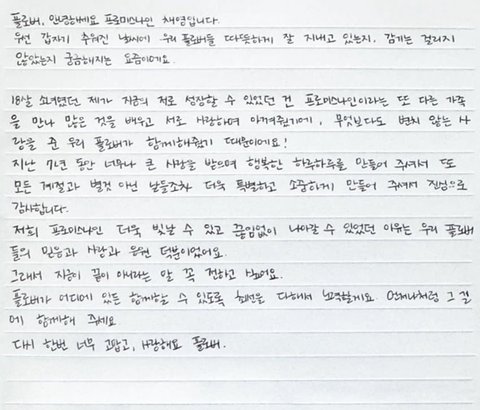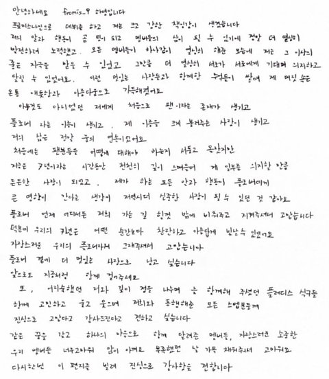 멤버들 전부 손편지 올려줬는데 그 중 일부만 가져옴