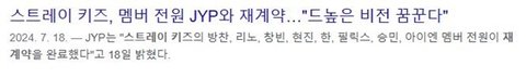 트와이스에 이어 스키즈도 전원 재계약 성공한 걸 보면