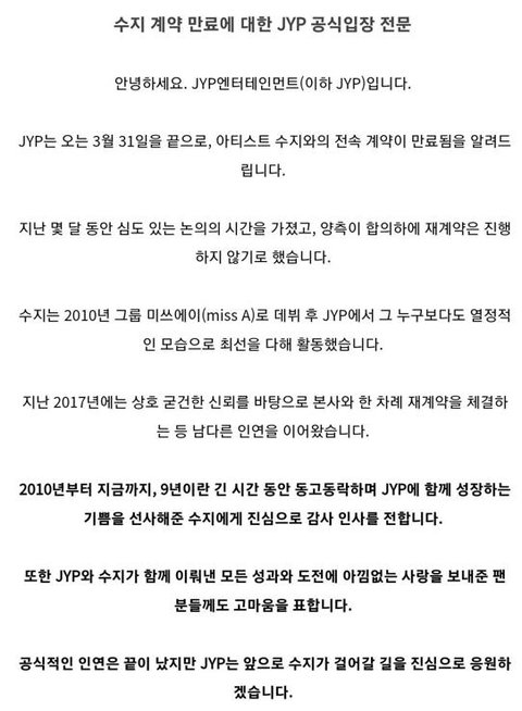 수지가 4개월을 끌더니 재계약하겠다고 해서