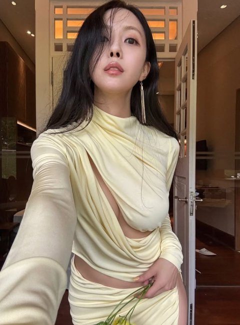 사진 속 효민은 상아색 드레스를 입고 다양한 포즈를 취하고 있다. 군살 하나 없는 몸매 라인과 더불어 노팬티, 노브라 노출이라는 파격적인 드레스 절개가 섹시한 분위기를 배가시킨다.