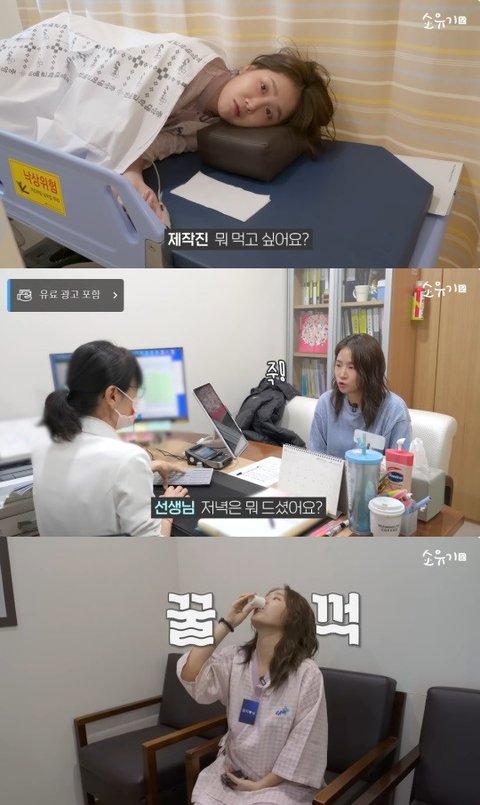 소유는 "마취가 하나도 안 됐다"고 했고, 의사는 "약이 최대 용량으로 들어갔다. 더 이상 들어가면 위험할 수 있다"고 했다. 소유는 결국 비수면 상태로 대장 내시경을 했다.