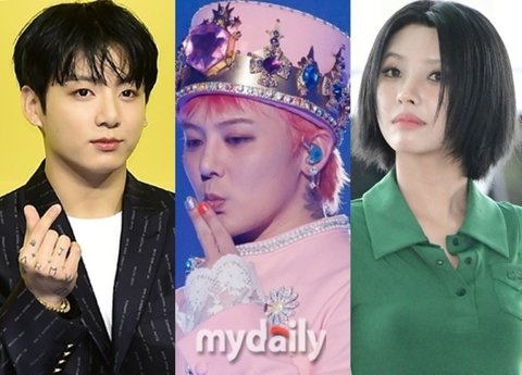 왼쪽부터 그룹 방탄소년단(BTS) 정국, 빅뱅 겸 가수 지드래곤, (여자)아이들 전소연 / 마이데일리