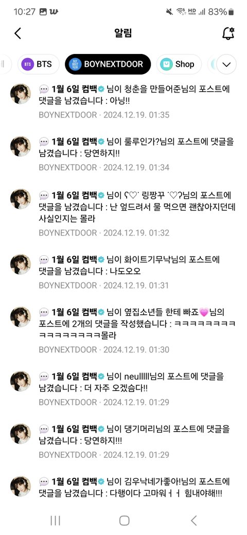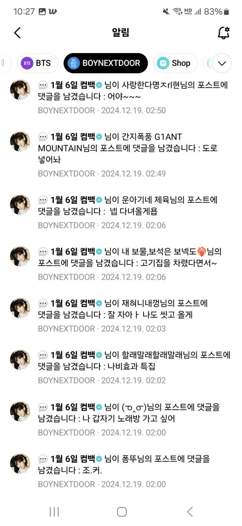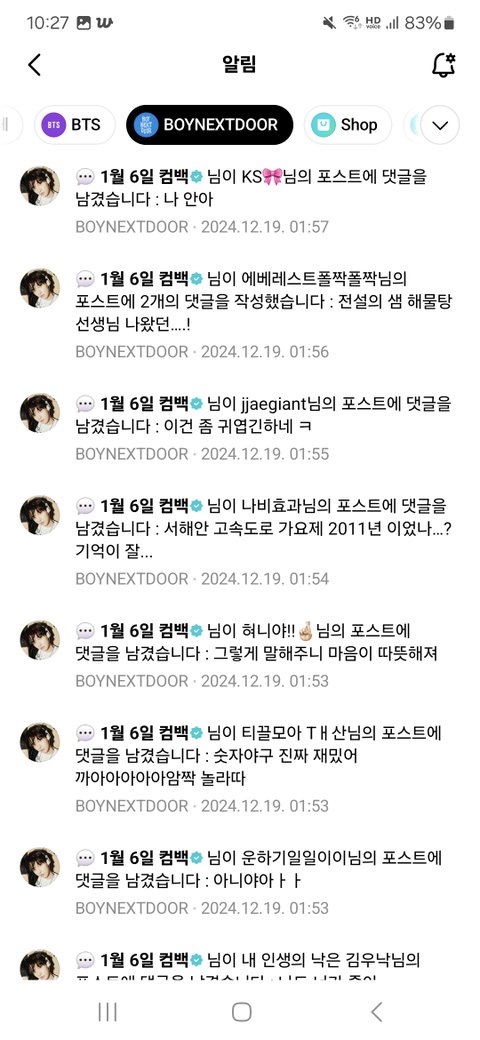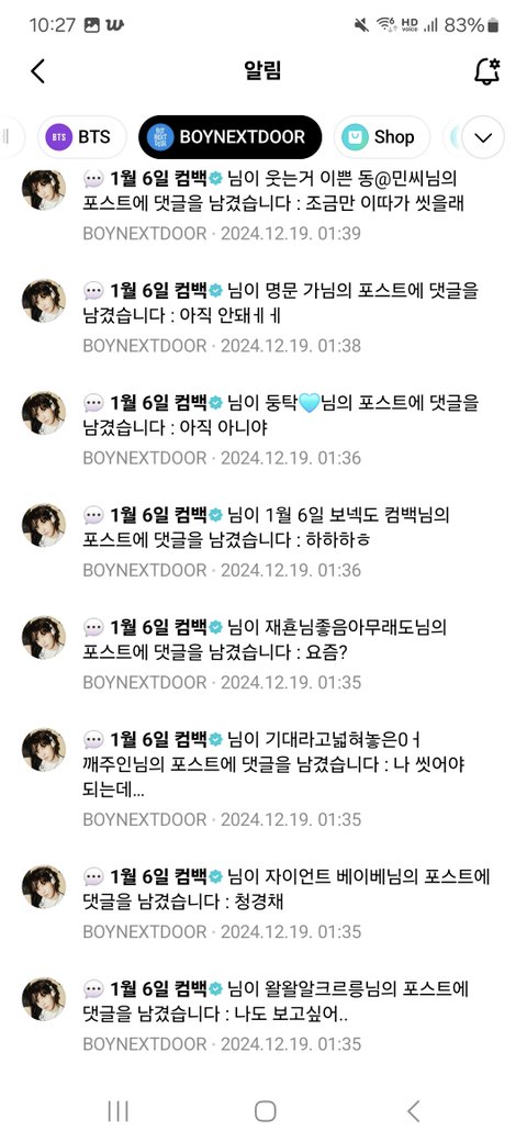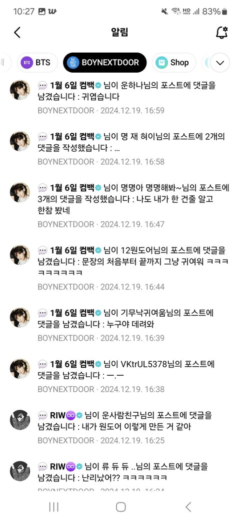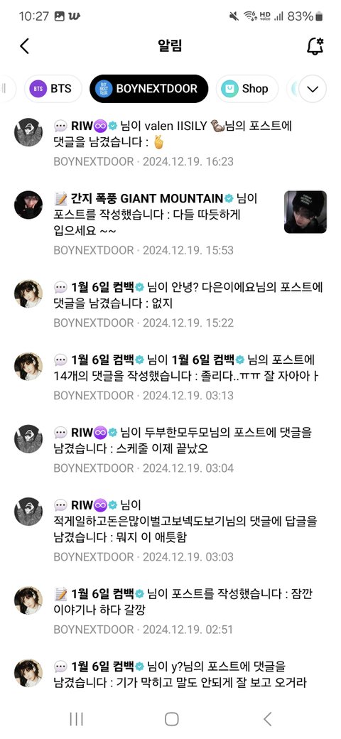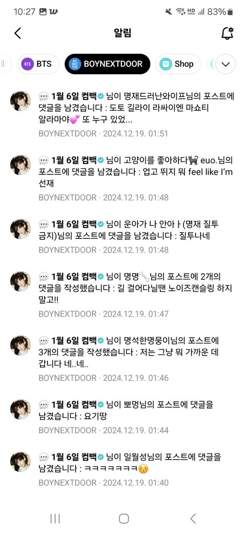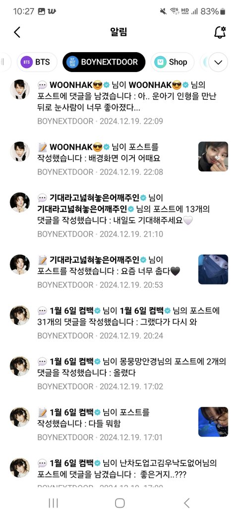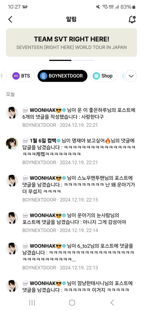 하루종일 위버스 알람 개껴