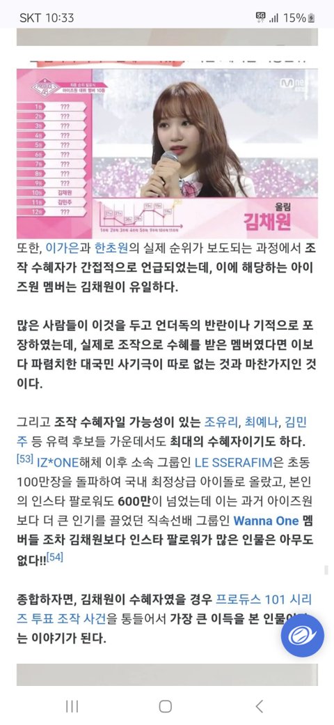 원래 조작이 아니었으면 아이즈원으로 데뷔도 못했을텐데 회사 덕으로 수혜를 업고 데뷔해서 이름 알리고 해체하고 대기업 (하이브)의 역대급 푸쉬그룹으로 재데뷔했는데도 실력논란+인성논란+회사논란으로 나락간걸보면 확실히 업보빔이라는게 존재하긴 하는듯