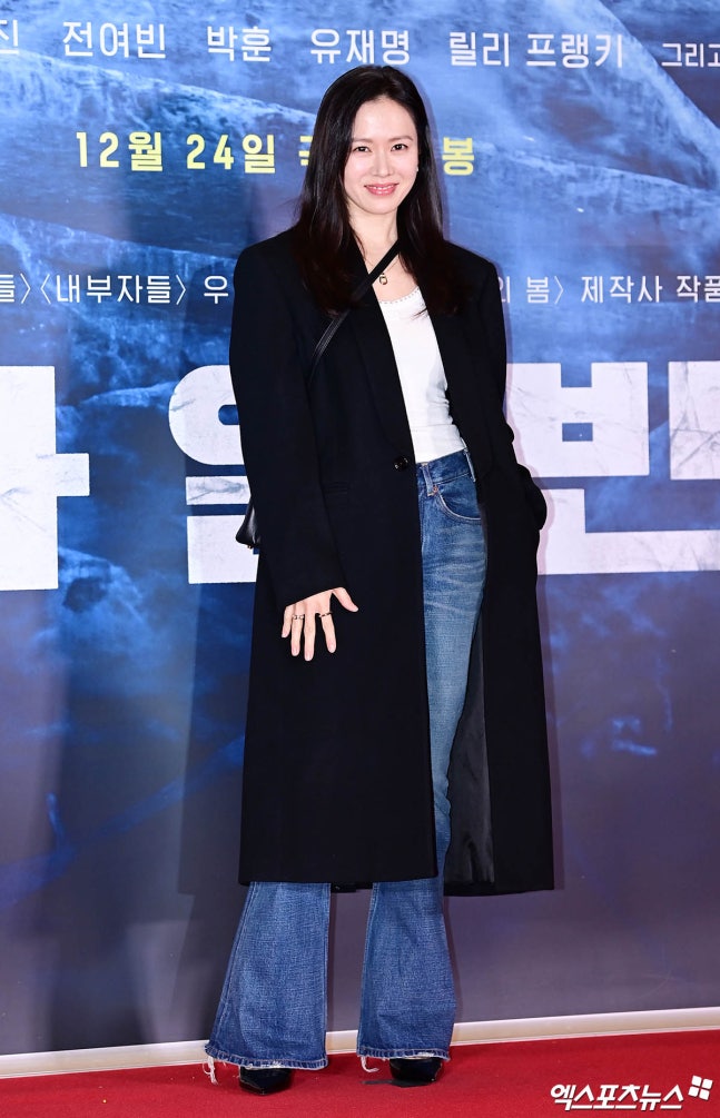 특히 현빈의 아내인 손예진이 포토월에 등장해 화제를 모았다. 손예진은 블랙 롱 코트에 부츠컷 데님 팬츠와 세미 크롭톱을 매치해 시크하면서도 특유의 청순한 비주얼을 뽐냈다.