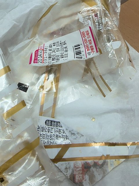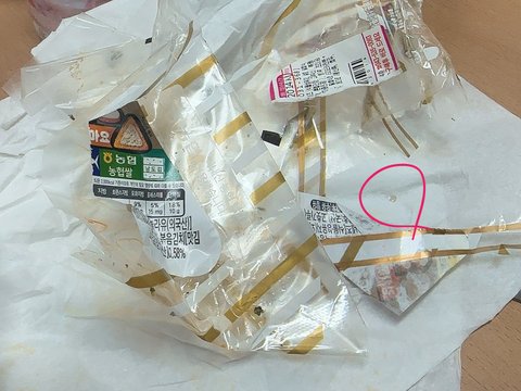 아침에 일 처리하고 회의 끝난뒤에 섭취를 했는데먹다보니 입안에 딱딱한게 걸려서 뭔가하고 뱉어봤더니 방부제처럼 생겼더라고요