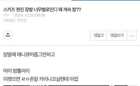 사는집도 한남더힐이 아닌거 다 털리고 구라 다 털리고 고소까지 당한 서희 ㅅㄴ행동하는것도 정도껏 해야지?ㅉ11월 락 음중 앵콜 영상을 보면 오히려 카리나가 현진이한테 꽃가루 뿌려주고 좋아하는 모습이 다 찍힌거 너도 잘 알텐데?서희 ㅅㄴ행동하느라 계속 부정하는거니?카리나가 현진이한테 꽃가루 뿌려주고 좋아하면서 움직이는 짤을 확 뿌리고 싶네?ㅉ(왜 네이트판은 용량이 커서 움직이는 짤을 못 뿌리게 하는건지..진심 짜증나네)스키즈 현진 장발 너무 별로인디 라고 추하게 까는 글쓴 안티야 서희 덕질하고 싶으면 속으로 얌전히 하고 카리나가 현진이를 좋아하는거니깐 인정할껀 인정하고 적당히해?
