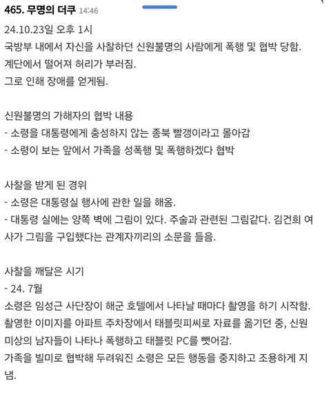 채상병 사망 사건의 주범인 임성근 사단장을 촬영을 한 후에 테러를 당한 군인 노은결 소장의 기자회견