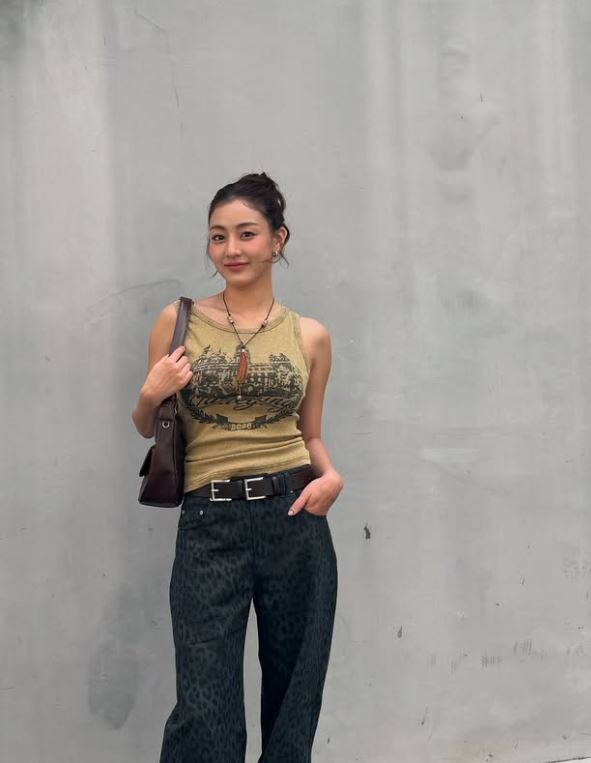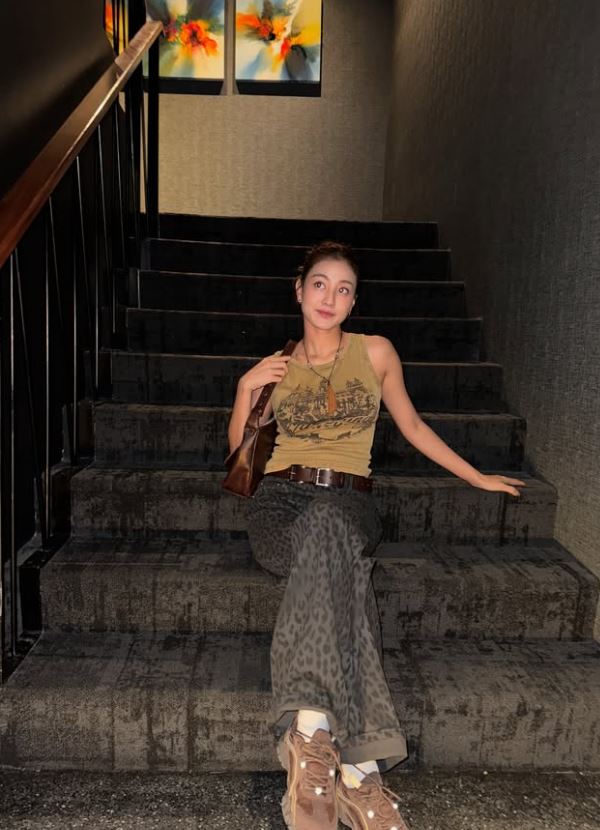 사진 속 지효는 민소매 패션으로 남다른 볼륨감을 뽐냈다. 호피무늬가 들어간 바지로 멋을 내고 포즈를 취하기도 했다.
