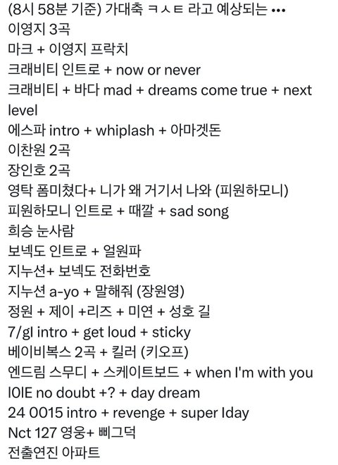 가요대축제 큐시트 뜸