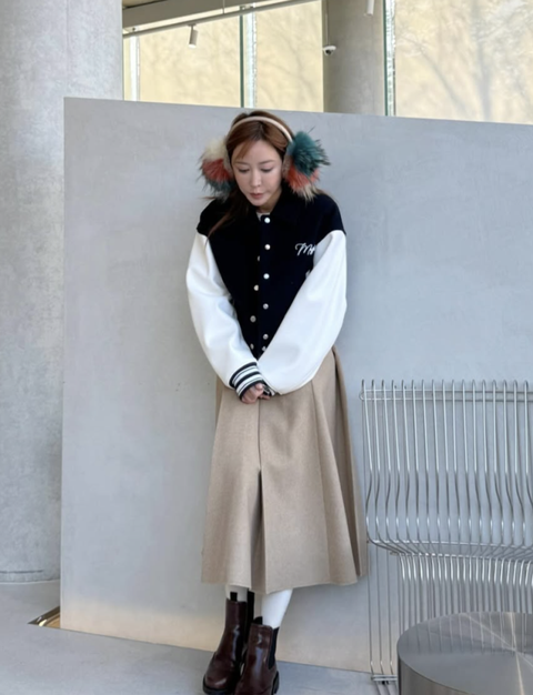 공개된 사진 속 슈는 화려한 색조합의 귀마개와 야구 잠바, 베이지 롱스커트를 매치해 발랄하면서도 사랑스러운 스타일을 선보였다. 특히, 그녀의 변함없는 동안 미모와 특유의 귀여운 매력이 돋보인다.