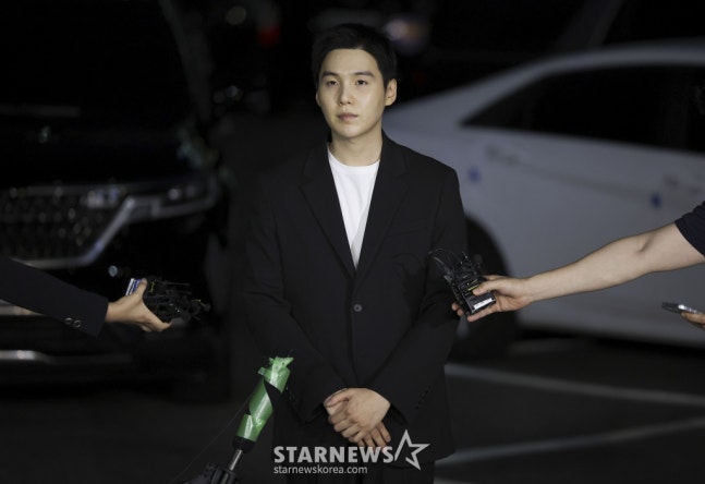 [서울=뉴시스] 정병혁 기자 = 전동 스쿠터 음주운전 혐의로 입건된 그룹 방탄소년단(BTS)의 슈가(민윤기)가 23일 서울 용산구 용산경찰서로 출석하며 질문에 답하고 있다. 2024.08.23. jhope@newsis.com /사진=정병혁결국 슈가는 사건 17일 만인 8월 23일 오후 7시 40분께 조사를 받기 위해 서울 용산경찰서에 출석했다. 검은 정장 차림으로 포토라인에 선 그는 "굉장히 죄송하다. 많은 팬분들에게 정말 큰 실망을 안겨드린 점, 진심으로 반성하고 있다. 성실히 조사에 임하고 오겠다"고 말했다.이후 슈가는 8월 25일 팬 커뮤니티 플랫폼에 자필 사과문을 게재하고 "지난 7일 성급하게 올린 첫 번째 사과문으로 인해 많은 혼란을 드려 죄송하다. 더 깊이 생각하고 신중했어야 했는데 그러지 못했다. 모두 내 잘못이다. 다시는 잘못된 행동을 하지 않도록 노력하고 뉘우치며 살아가겠다. 이번 일로 인해 나는 멤버들, 팬분들과 같이 만든 소중한 추억에 커다란 흠을 내고 방탄소년단의 이름에 누를 끼쳤다. 멤버들과 팀에 피해를 입히게 되어 표현하기 어려울 정도로 너무나도 미안하고 괴로운 마음이다"며 또 다시 고개를 숙였다.