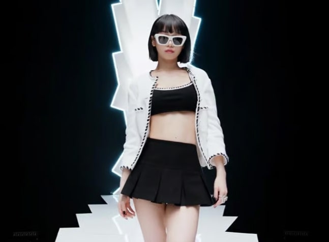 허윤진은 티저에 이어 쇼케이스에서도 브라 톱과 속옷 라인을 노출한 숏팬츠 위에 흰 셔츠를 걸치고 위아래 모두 초미니 패션으로 화제를 이어갔다.