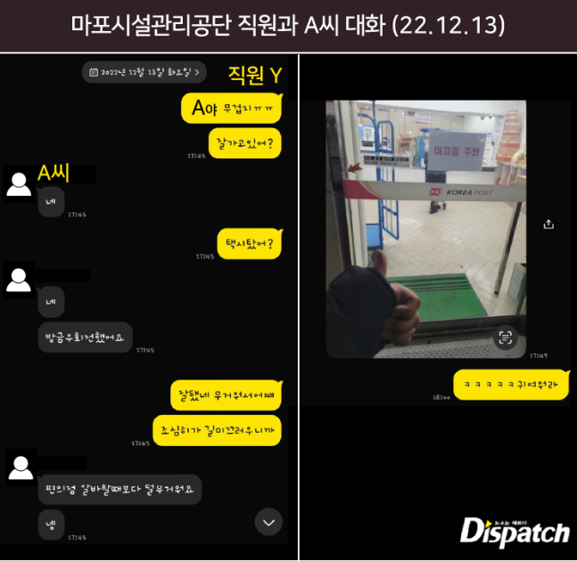 A씨 : 나는 송민호가 마포편익시설로 옮긴 것도 '디스패치' 기사를 보고 알았다. 워낙 (시설관리공단에) 안 나왔으니까, '계속 안 나오는구나' 했다.