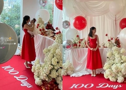 또 빨간색 풍선, 카펫 등으로 꾸며진 100일 잔치 장소도 인상적이다. 앞서 백아연은 빨간색 민소매 드레스를 입고 100일 잔치를 치르는 모습을 공개해 눈길을 끌었다. 출산한 지 석달 남짓 됐다고 믿기지 않을 만큼 늘씬한 몸매도 감탄을 자아냈다.